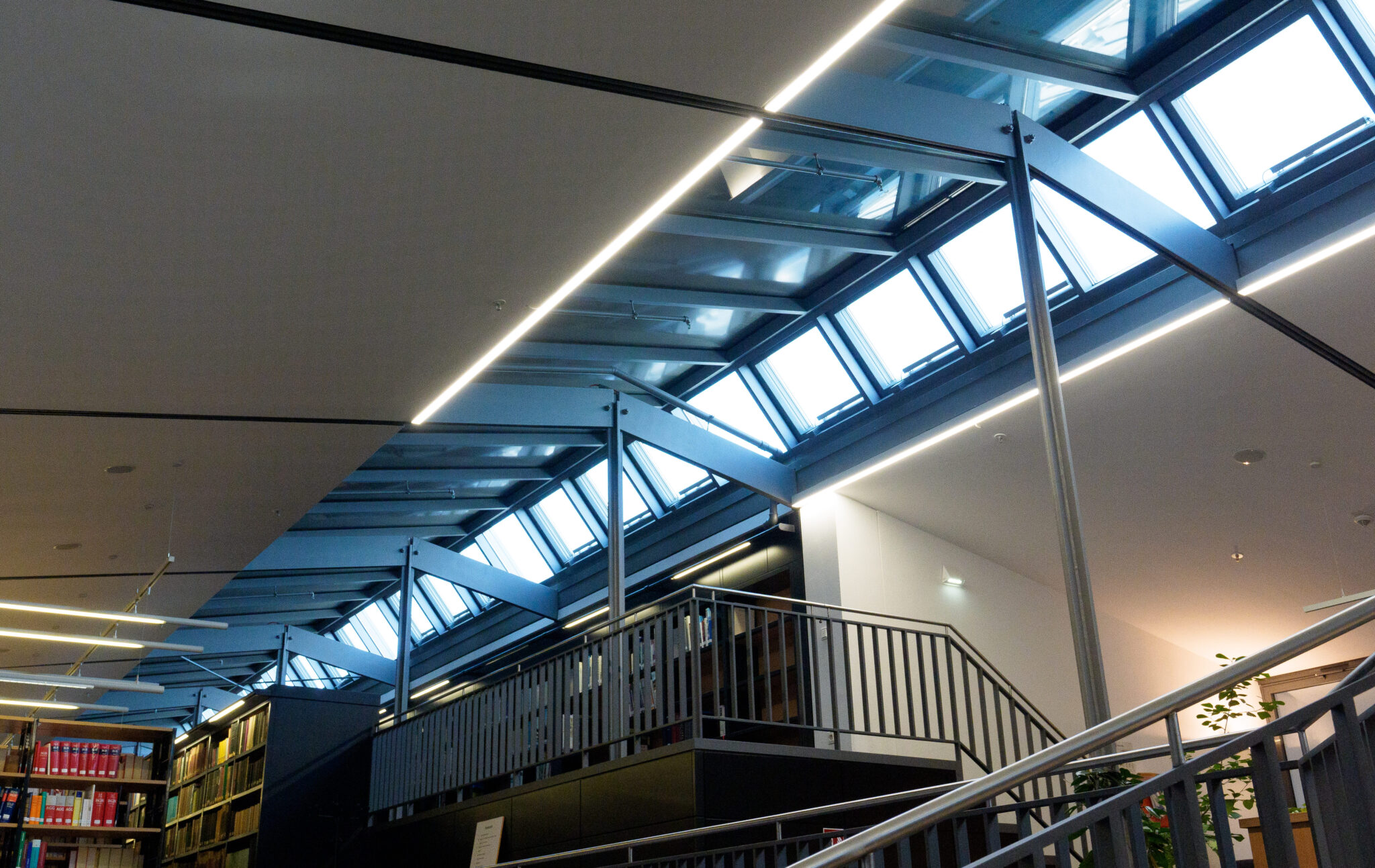 Mängelbeseitigung von Oberlichtern in der Bibliothek, Herstellung außenliegender Sonnenschutz, Herstellung Pfosten-Riegelkonstruktion, Entkopplung der Rauchableitungsflächen