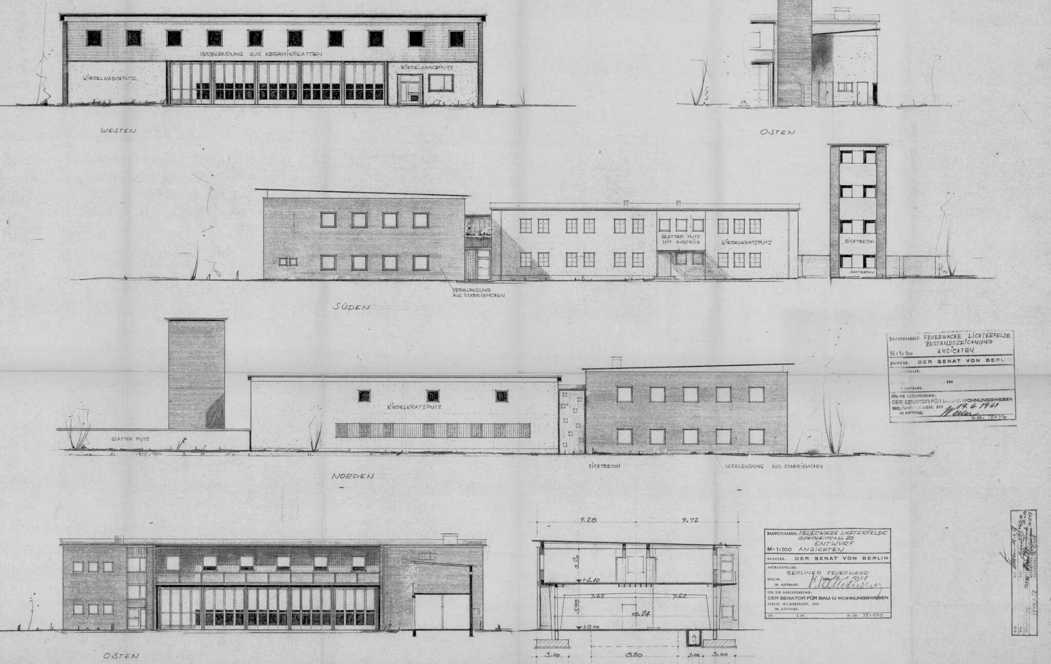 Die 1907 erbaute Feuerwache Lichterfelde wurde in den Kriegsjahren des 2. Weltkrieges durch einen Bombenangriff weitestgehend zerstört. Im Jahre 1959 entstand der Ersatzneubau der Feuerwache, der sich mit seinen Nachbargebäuden als Ensemble unter Denkmalschutz befindet. Im Zuge der Maßnahme wird die Feuerwache in Bezug auf die Gebäudehülle sowie die technische Gebäudeausrüstung energetisch ertüchtigt. Die bestehenden Raumstrukturen werden umgeordnet und die Räume nach den Standards der Berliner Feuerwehr saniert. Die Maßnahme findet im laufenden Betrieb statt.
