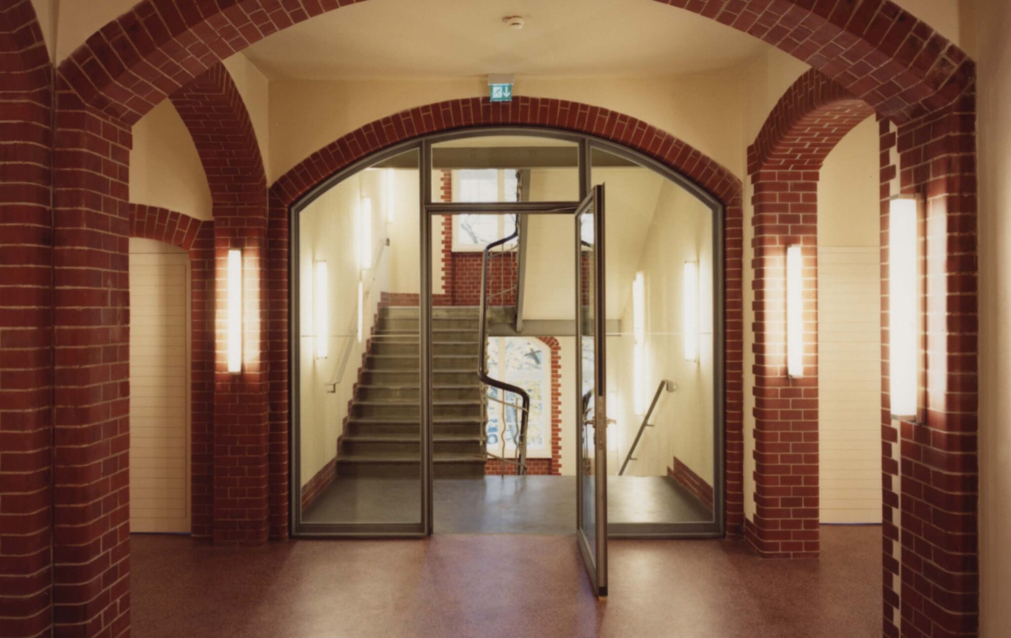 Das historische Gebäude wurde um 1900 erbaut und gehört zum denkmalgeschützten Gesamtensemble der „Kaserne des Kaiser-Alexander-Garde-Grenadier-Regiments“ (später Friedrich-Engels-Kaserne). Der Mauerwerksbau ist mit einer Naturputzfassade versehen und verfügt in Teilbereichen über tragende gusseiserne Stützen. Der Dachstuhl ist als Pfettendach in Holzkonstruktion ausgeführt.Adresse