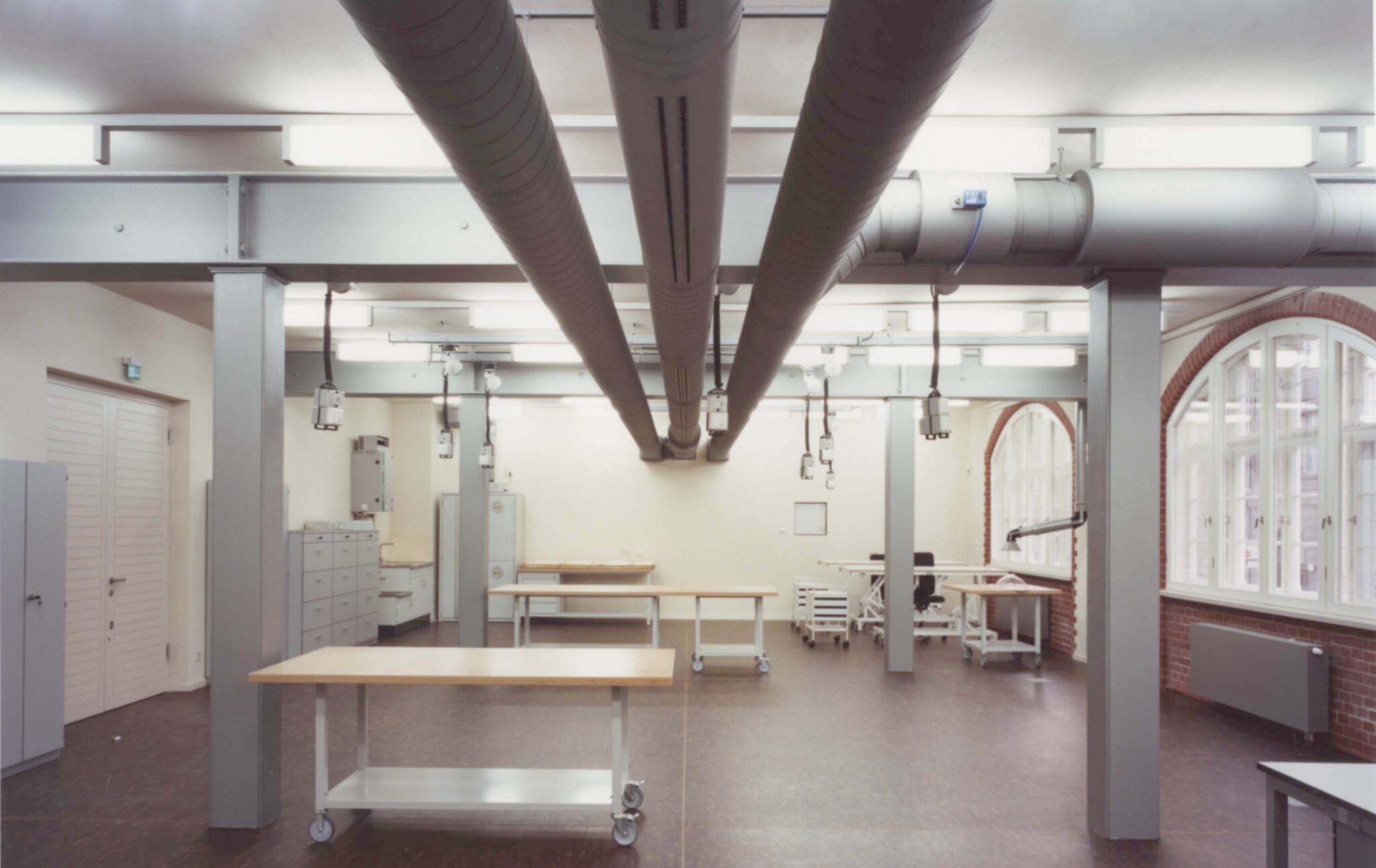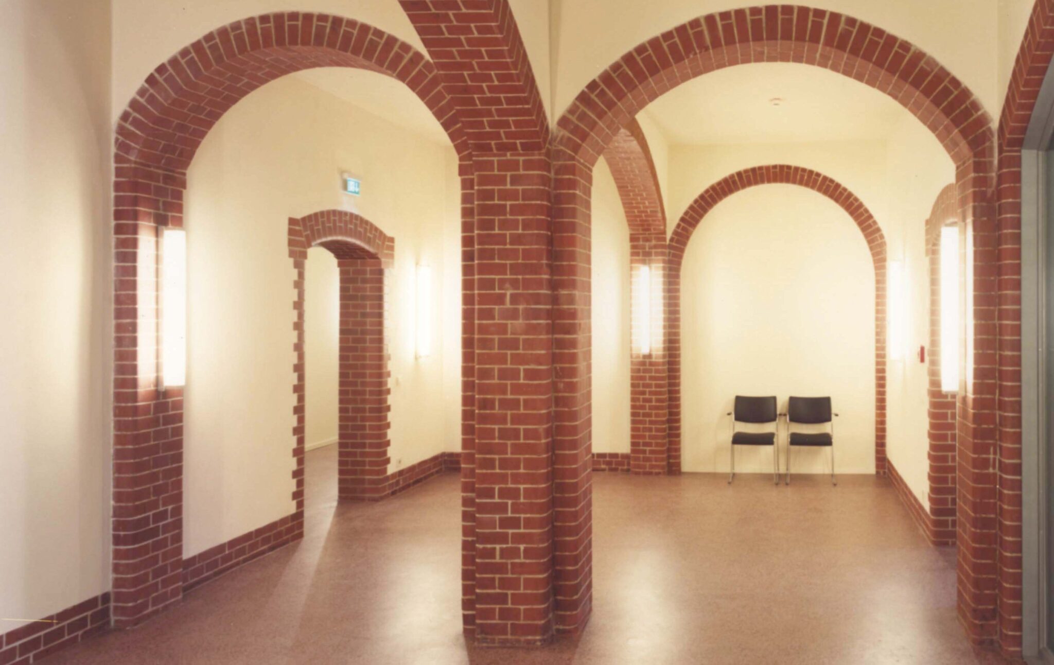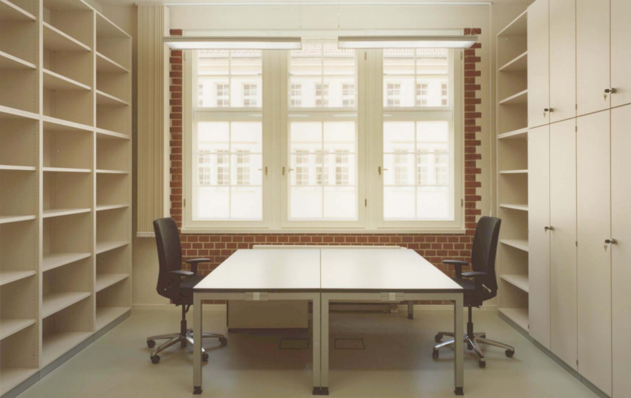 Abdichtung Kelleraußenwände, Restaurierungs- und Rekonstruktionsarbeiten, Schadstoffsanierung Bestandsdach, Ersteinrichtung von Werkstätten, Bibliotheken, Archiven und Büros
