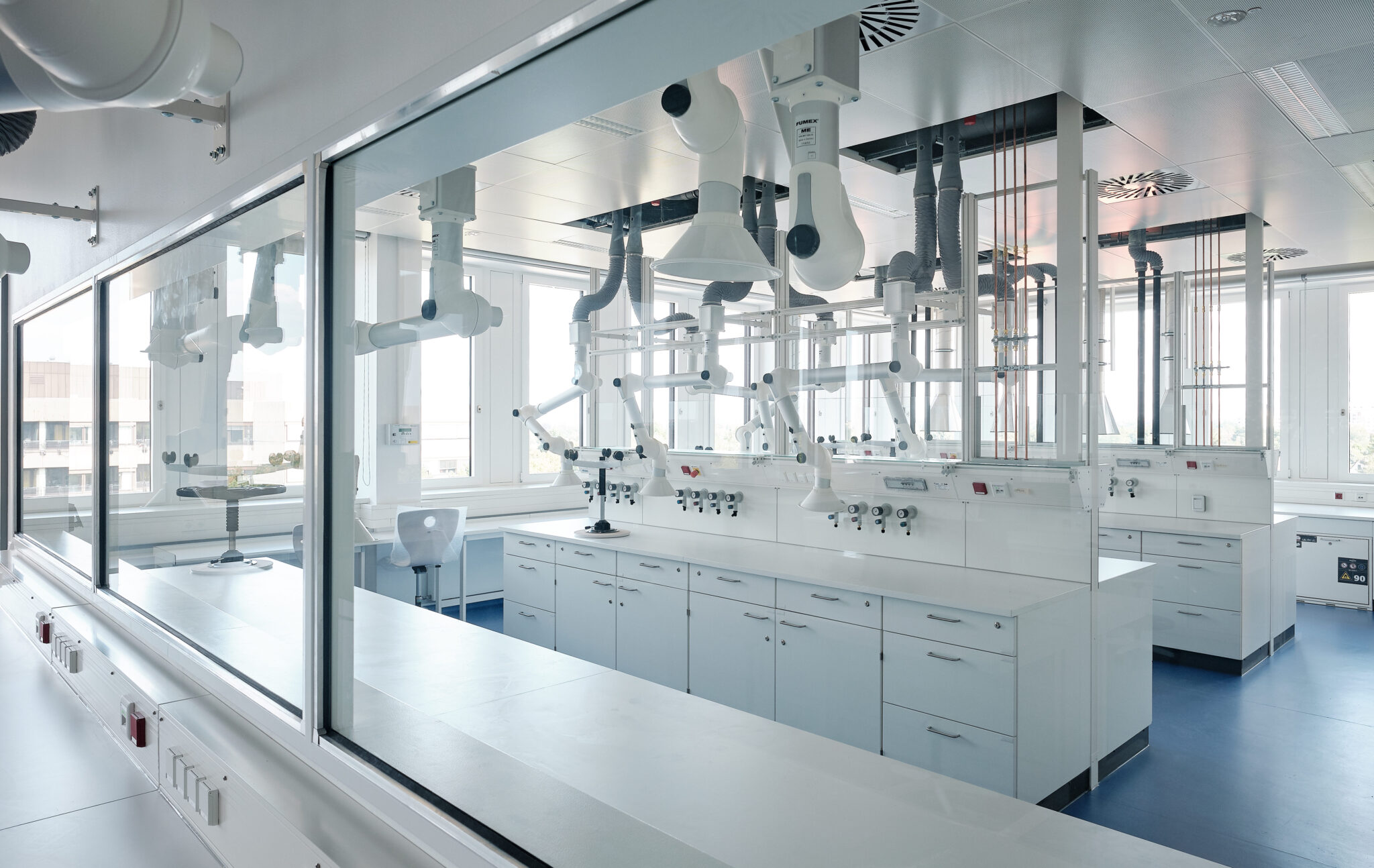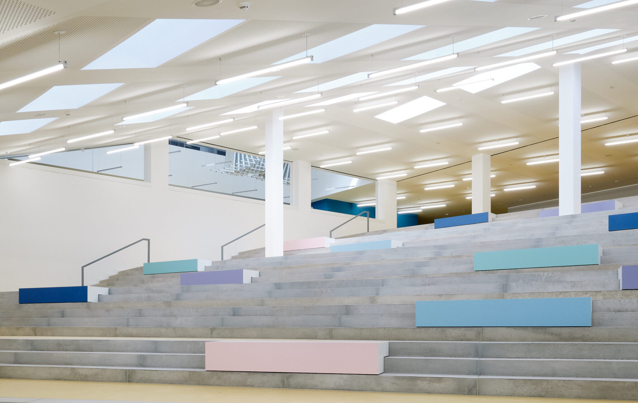 Das Oberstufenzentrum für Chemie, Physik und Biologie in Berlin Neukölln ist Teil der Berliner Schulbauoffensive. Der kompakte Baukörper nach dem Entwurf von Numrich Albrecht Klumpp Architekten spiegelt mit seiner klaren, streng gerasterten Fassade die Nutzung als wissenschaftliches und technologisches Oberstufenzentrum wider. Der offene Innenbereich, insbesondere der großzügige Eingangsbereich mit Zugang zur Cafeteria lädt zur Kommunikation und zum Austausch ein. In den Geschossen des 1.OG und 2.OG befinden sich Allgemeine Unterrichtsräume, während sich die Labore zur Ausbildung der Fachbereiche Chemie, Physik und Biologie im 3.OG – 5.OG befinden.Adresse